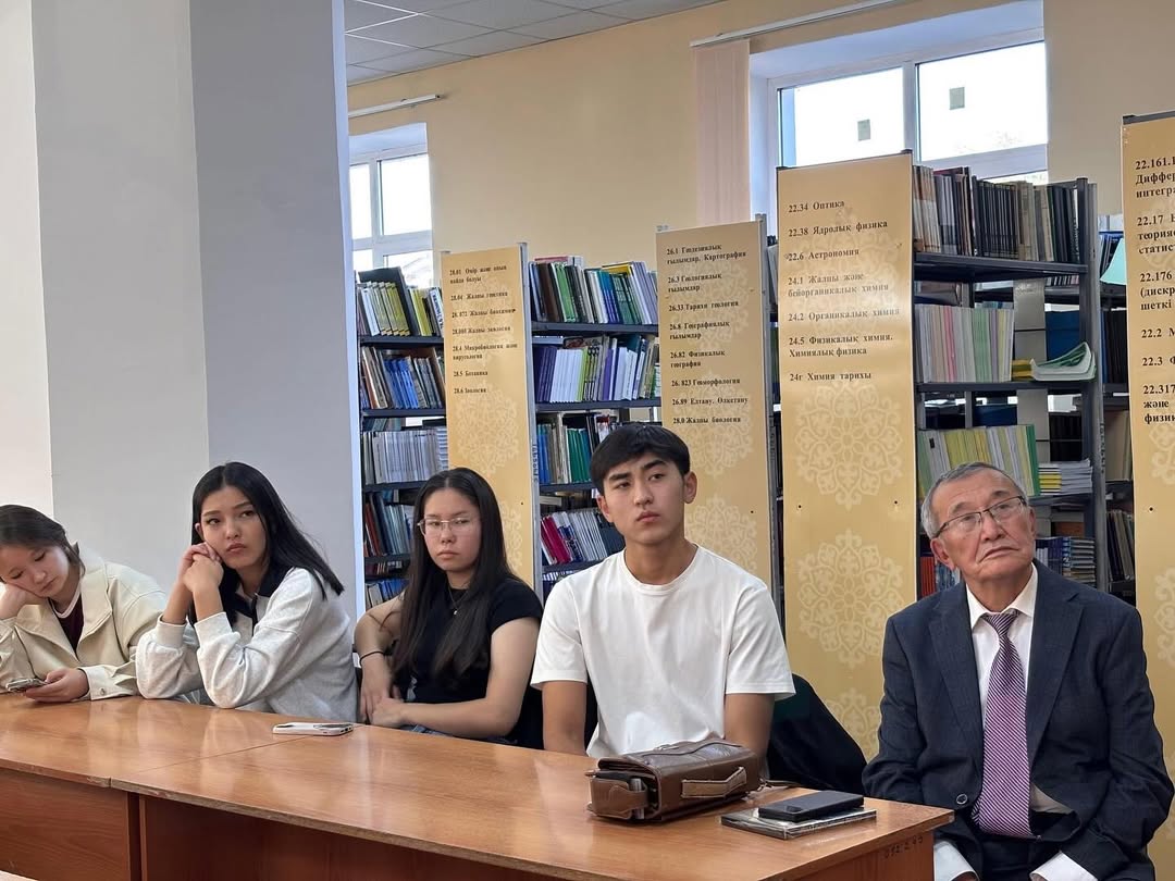 The event was attended by the teaching staff as well as students of the Faculties of Physics and Mathematics, Philology, Natural Sciences, Pedagogy, and History. The lecturer highlighted the life path, scientific contributions, and valuable memories related to Schmidt Musauly Aytaliev. He also shared interesting aspects of the field of physical and mathematical sciences.